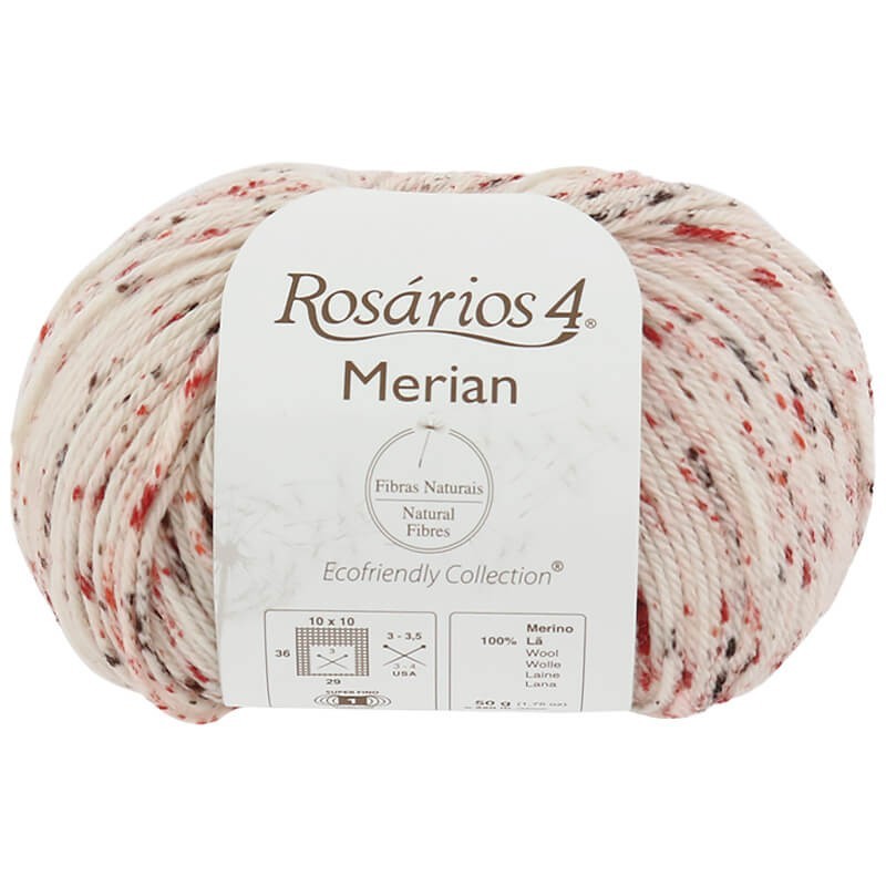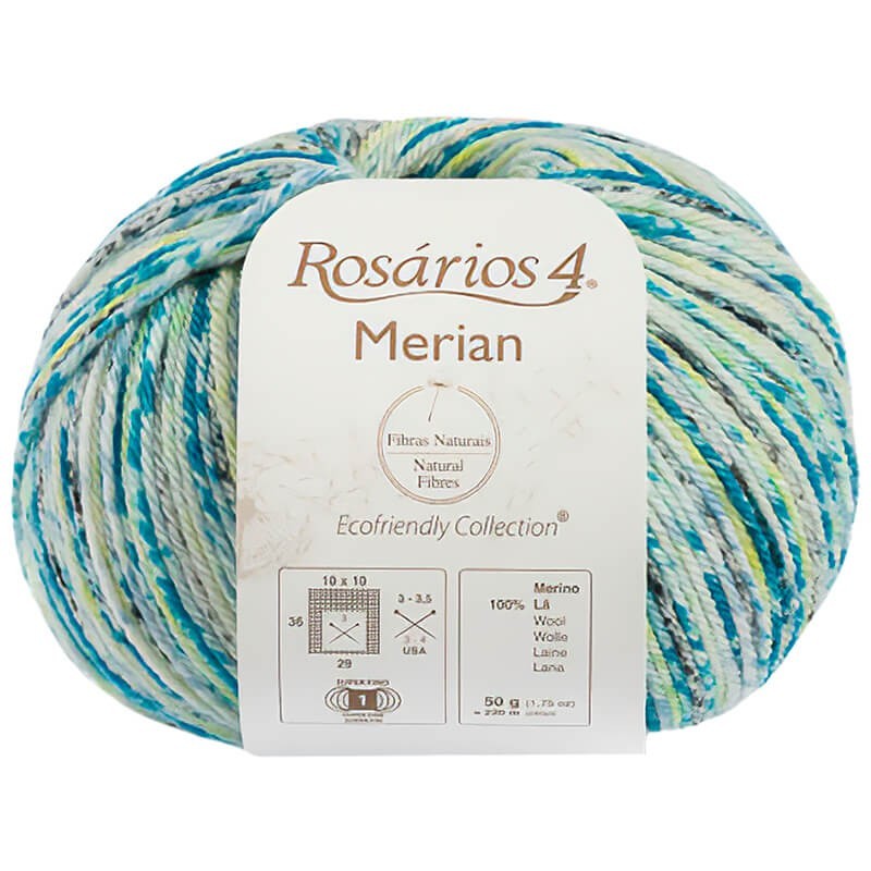 Merian de Rosários 4 es un hilo 100% lana merino, que te permite explorar la suavidad y calidad en su forma más pura. Su paleta de colores jaspeados aporta un toque multicolor único a cada proyecto, creando prendas que resaltan por su belleza y textura.